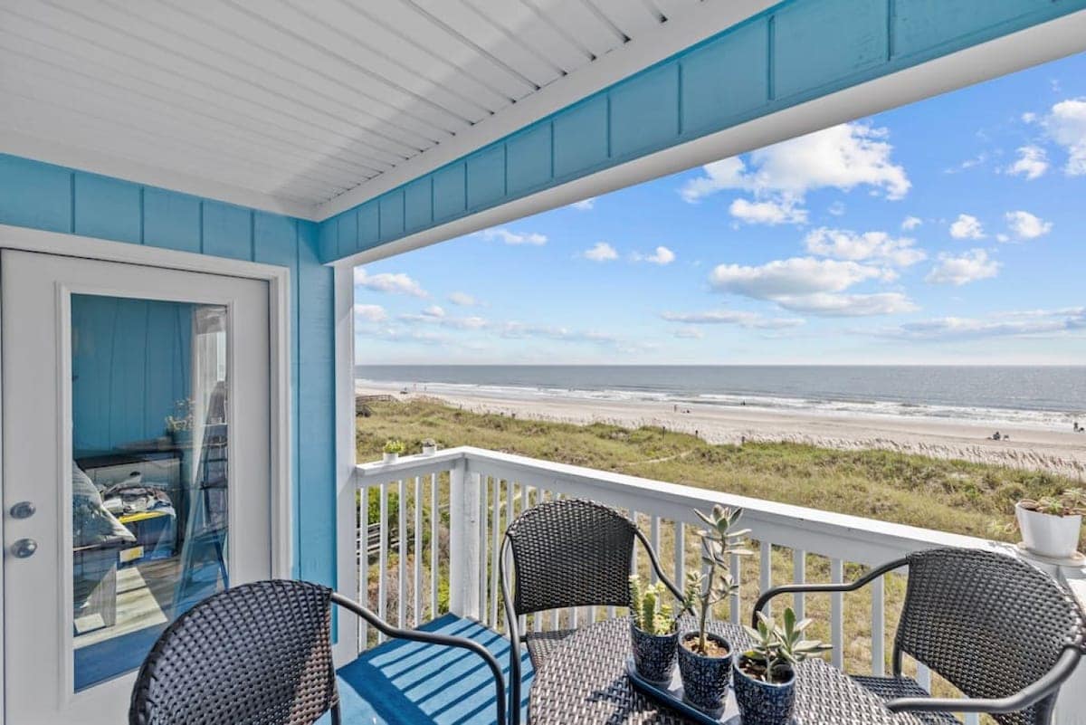 Totally Beaching - Unit #2 is one of 4 spacious condos located a block from the beach & 2 blocks from the fishing pier in the heart of historic Cherry Grove. Each unit is 900sf with 2 bedrooms, one bath, full kitchen and living room with front and rear porch access. The rear porch overlooks a natural pond teeming with wading birds and other wildlife. Guests are provided the essentials: bed linens, towels/bath clothes, cookware, and keurig coffee maker. Unit #2 is on the 2nd level right.