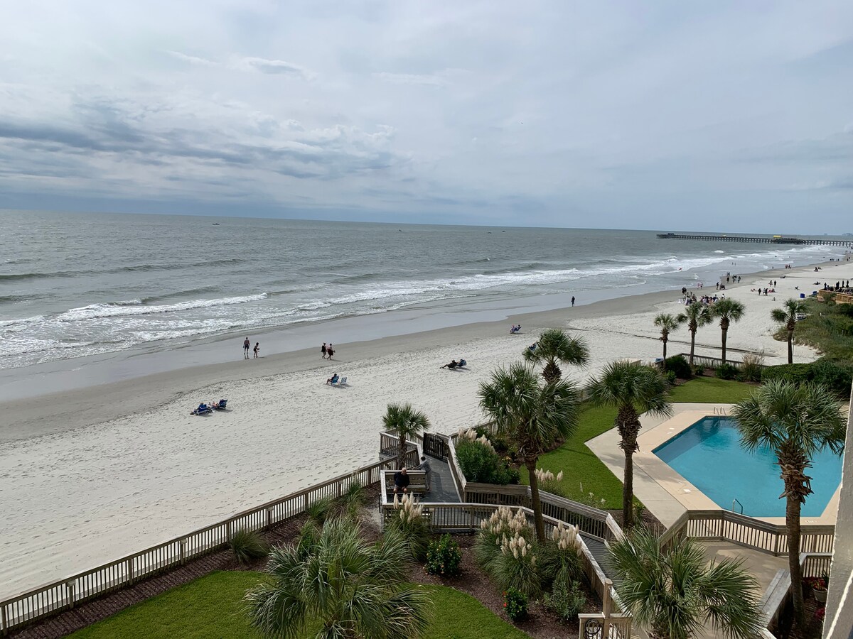 Spacious direct oceanfront corner unit with a panoramic view. Just steps from the beach and has the most amazing views of the Atlantic Ocean. Cherry Grove Beach is the absolute best area on the Grand Strand! Family friendly with lots of things do within walking distance. The building has free covered parking and 2 elevators. There is a full sized grocery store and several restaurants within walking distance. The unit is keyless entry for self check-in. Bath towels and linens are provided.