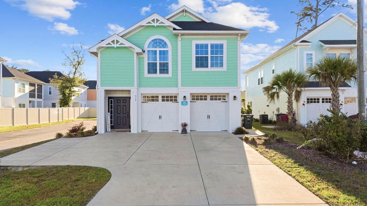 Family fun for all ages, located near the beach and intercoastal waterway. Safe central location with colorful artsy fun! New 2026 pinball. Lavish modern décor with comfortable King & Queen bedrooms. A short drive to family favorite Cherry Grove Beach. High tech sound & lighting systems, Dolby Atmos, LG OLED TVs, streaming & PS5 game system, arcade, foosball and new pinball machines. Tesla car charger. Full featured gourmet kitchen, Weber charcoal grill, and fire pit. Ready for play!