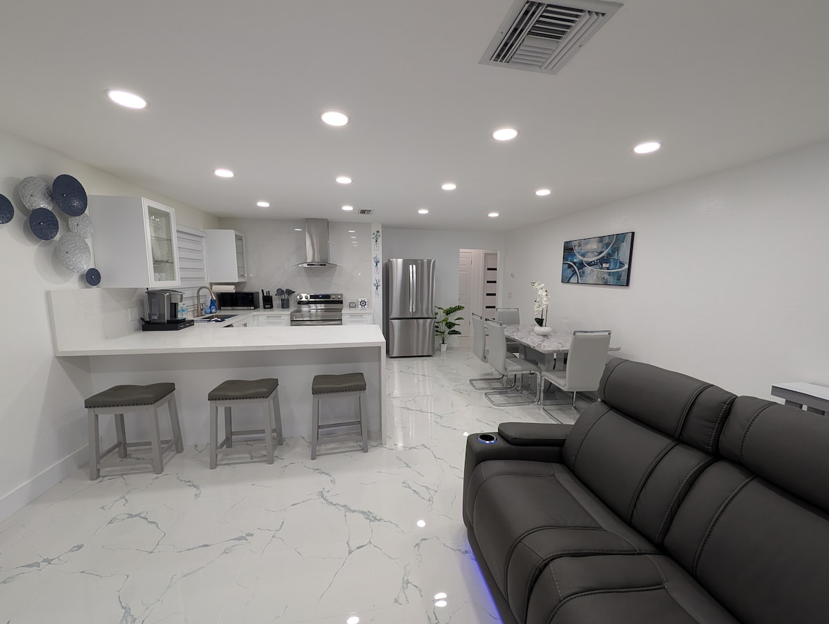 Blue Haven Haus is a professionally designed coastal retreat in Naples Park. The spacious interior features 3 bedrooms, including a primary suite with a king bed and en-suite bath, a 2nd king bedroom, a 3rd bedroom with two twin beds, and a full guest bath with a bathtub. Outfitted with a heated saltwater pool & spa, Smart TVs, beach gear & games. Luxurious touches meet laid-back style, steps from Vanderbilt Beach & Ritz-Carlton. House attendant on-call during your stay!