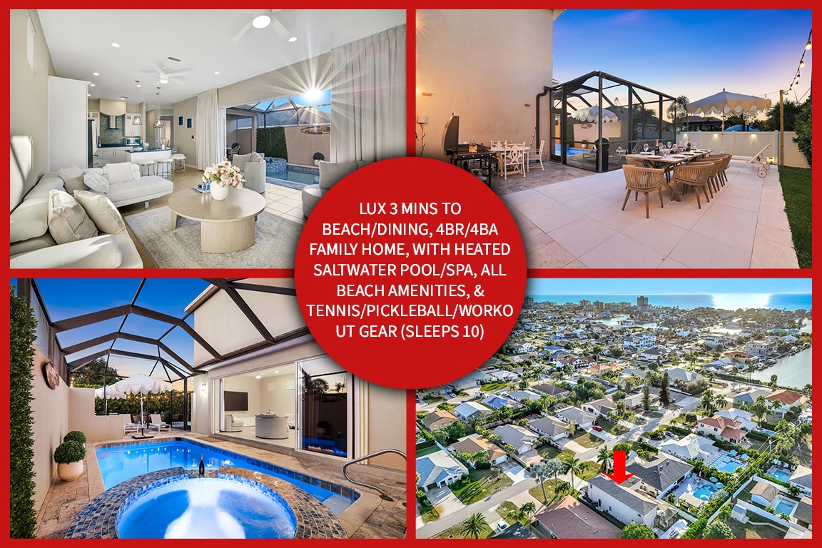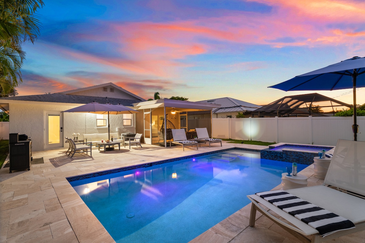 可爱的海滩平房泳池/水疗中心,距离Naples海滩1.5英里