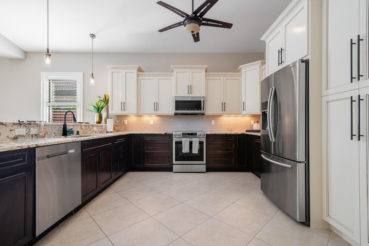 海滩、热水浴缸和恒温泳池!2间主人套房,配备2张特大号双人床