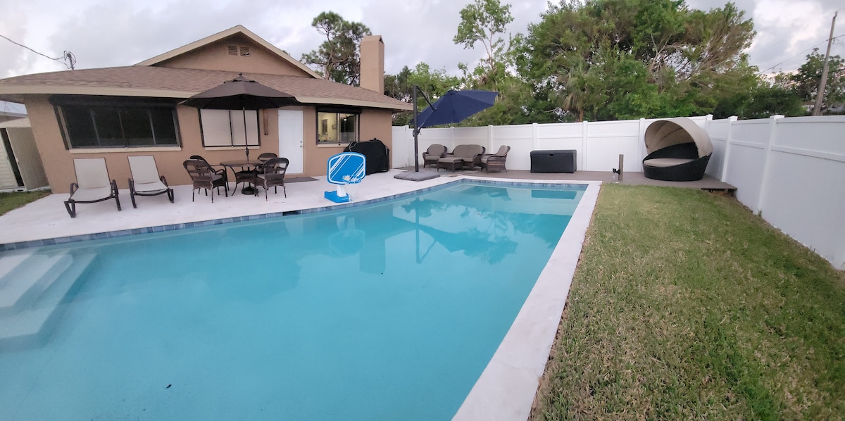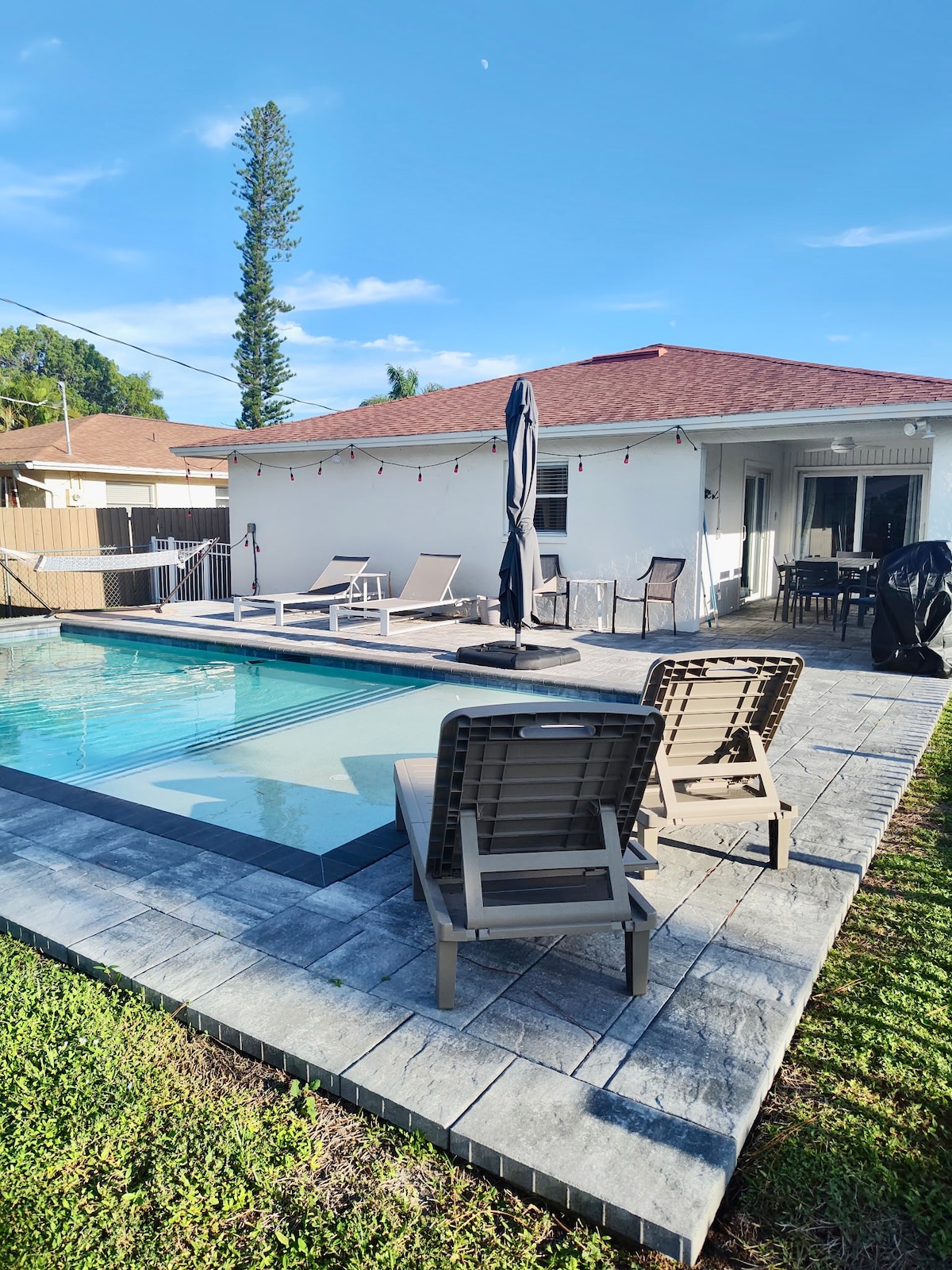 Luxurious 3BR Naples vacation rental in Naples Park, just minutes from Vanderbilt Beach. Enjoy a modern chef’s kitchen, open layout, and designer touches. Relax in your private heated saltwater pool and spa inside a screened lanai for mosquito-free comfort. Perfect for family vacations, golf getaways, or pickleball weekends. Close to white-sand beaches, shopping, dining, and world-class golf. Pet-friendly and family-friendly, this oasis ideal for couples, groups, or extended stays. Book today!