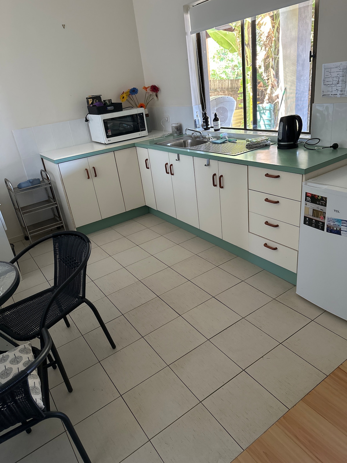 Guest accommodation with a bathroom with full sized bath, vanity and separate shower, separate toilet, kitchenette/ laundry, living/ dining room. Two bedrooms, one good sized bed room with queen sized bed, smaller one with double bed. Single fold out bed. Owner lives upstairs. Separate entry. Breakfast essentials, tea,coffee, bread, butter, cereal and milk are provided. Level walk to three beaches (600m) and the Tomaga River(400m). Tomakin Sports/Social Club (400m), Rivermouth Cafe (600m)