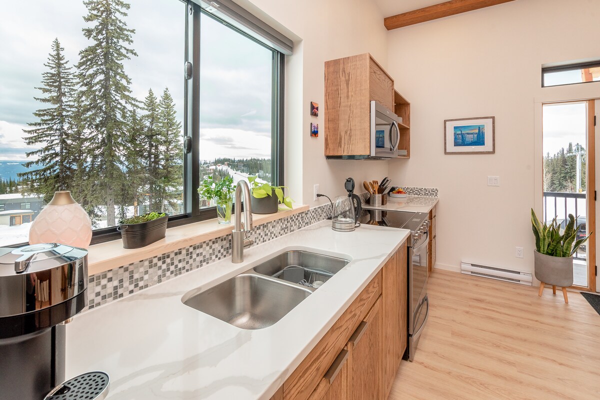 Wild Mountain Chalet at SilverStar Mountain Resort is a deluxe 2 bedroom, 1 bath 1000 sqft suite that sleeps 4-6 guests. With a pristine location at the top of the Alpine Meadows, this home offers spectacular views of the Resort and the Monashee mountains and is a true ski in/out. Only a short 7 minute walk to the village it offers access to ski runs and hiking trails right at the doorstep. The interior is modern and welcoming with lots of attention to detail.