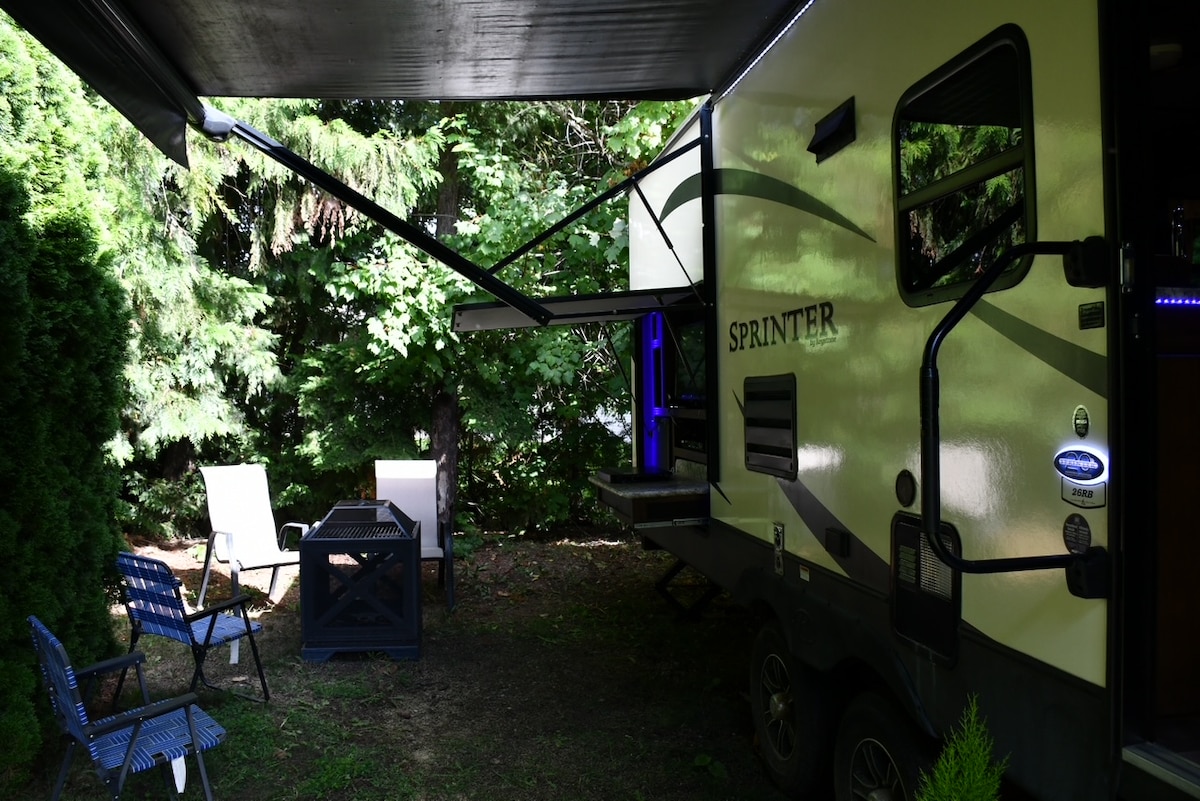 Cozy trailer with stunning views in Scotch Creek, Shuswap, BC. Within walking distance to the public beach, marina, grocery store, liquor store, food trucks, coffee shop, pizza place, and pharmacy. Just 1.5km from the Provincial Park with trails, another beach, playgrounds, and a bike park. Private driveway and lawn, full bathroom, kitchen, queen bed, and hide-a-bed for kids. Enjoy the large deck with BBQ, fire pit, Amazon Prime TV, WiFi, and boat parking. Perfect family-friendly getaway!