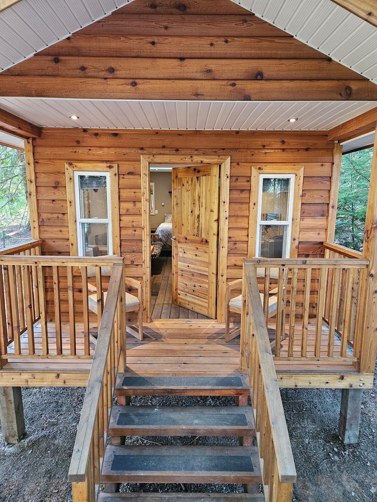 Unplug and unwind in a solar powered, cozy cedar cabin nestled among the trees. This open concept cabin offers a kitchen area, dining area, furnace, queen size bed, as well as a futon for additional sleeping arrangements. Separate shower house, outhouse and covered picnic area provide you with all of your basic necessities while maintaining a rustic camping feel. Propane firepit included (bring your own bottle or rent one from us). Enjoy all of what White Lake has to offer just minutes away.