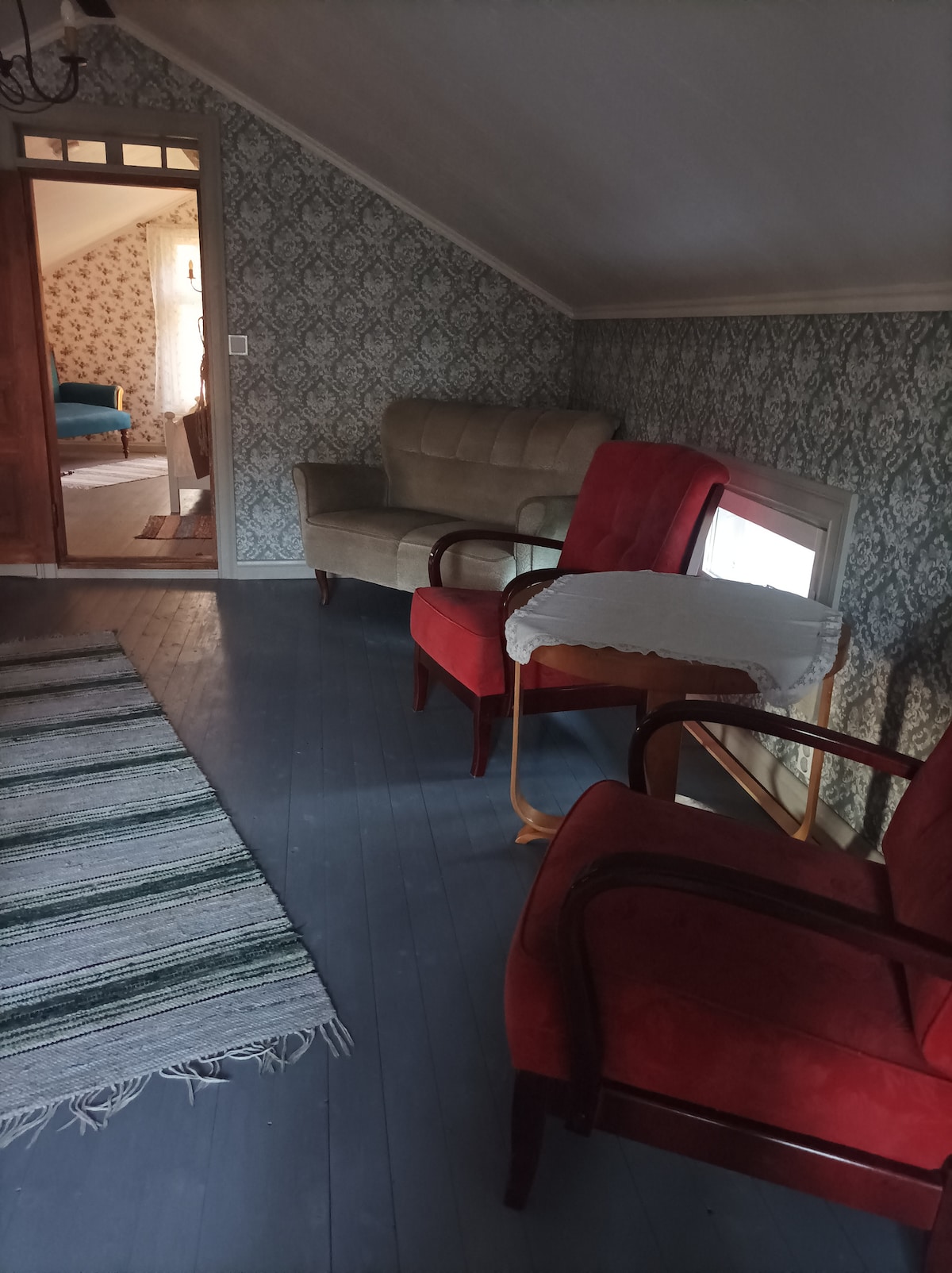 Historian havinaa ja vintagea vanhassa pappilassa. Perhehuoneessa on kaksi erillistä huonetta; parisänky ja kaksi erillistä sänkyä toisessa huoneessa. Aamiaisen voi ostaa paikanpäällä mutta keittiö on vaihtoehtoisesti käytettävissä aamiaisen ja iltapalan valmistukseen. Alakerrassa on viehättävät kylpytilat ja sauna/poreallaskin on mahdollista varata. Kesäisin myös pihasauna ja palju.