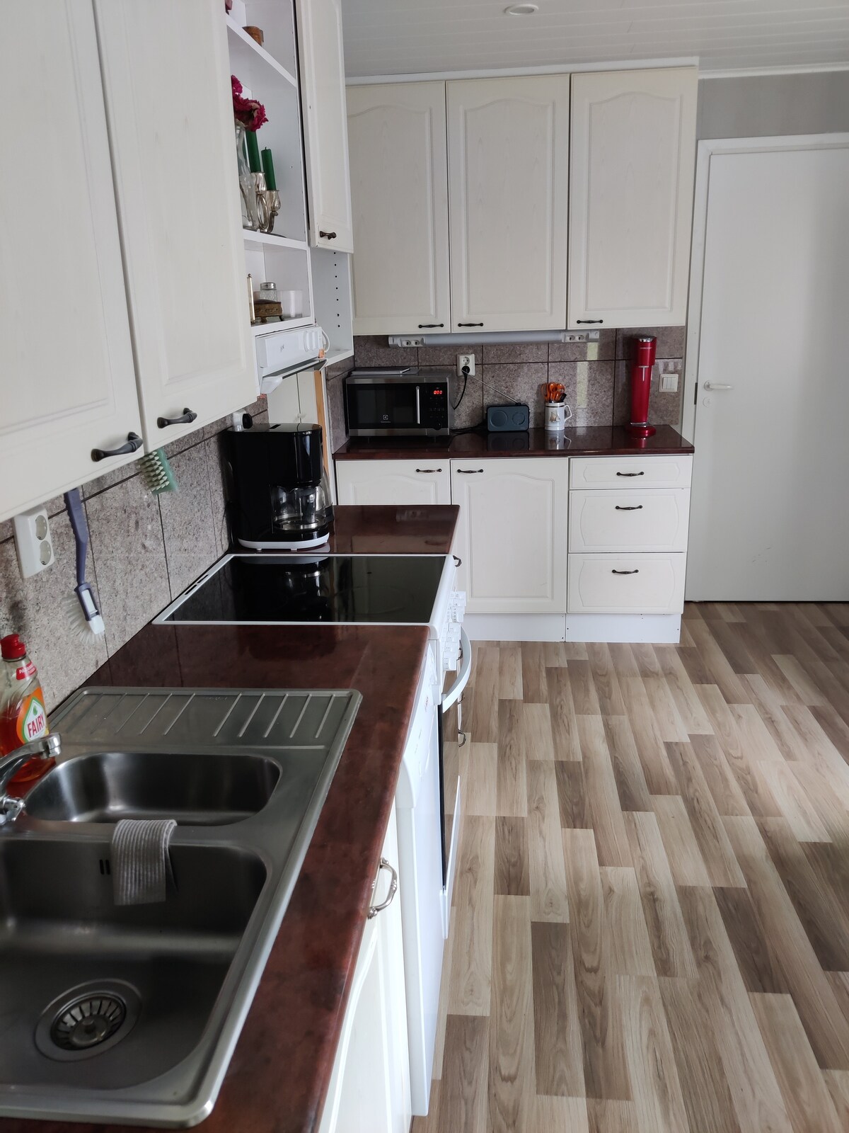 Relax in a charming 1960s holiday home where nostalgic style meets modern comfort. The air-conditioned house features spacious rooms, a well-equipped kitchen, and fast Wi-Fi. Perfect for families, business travelers, nature enthusiasts, and city explorers. Enjoy the peaceful countryside, seaside views, and outdoor trails, while Oulu’s city services are just a short drive away. In the evening, unwind in the gentle heat of the traditional wood-fired sauna and enjoy a relaxed, easy atmosphere.