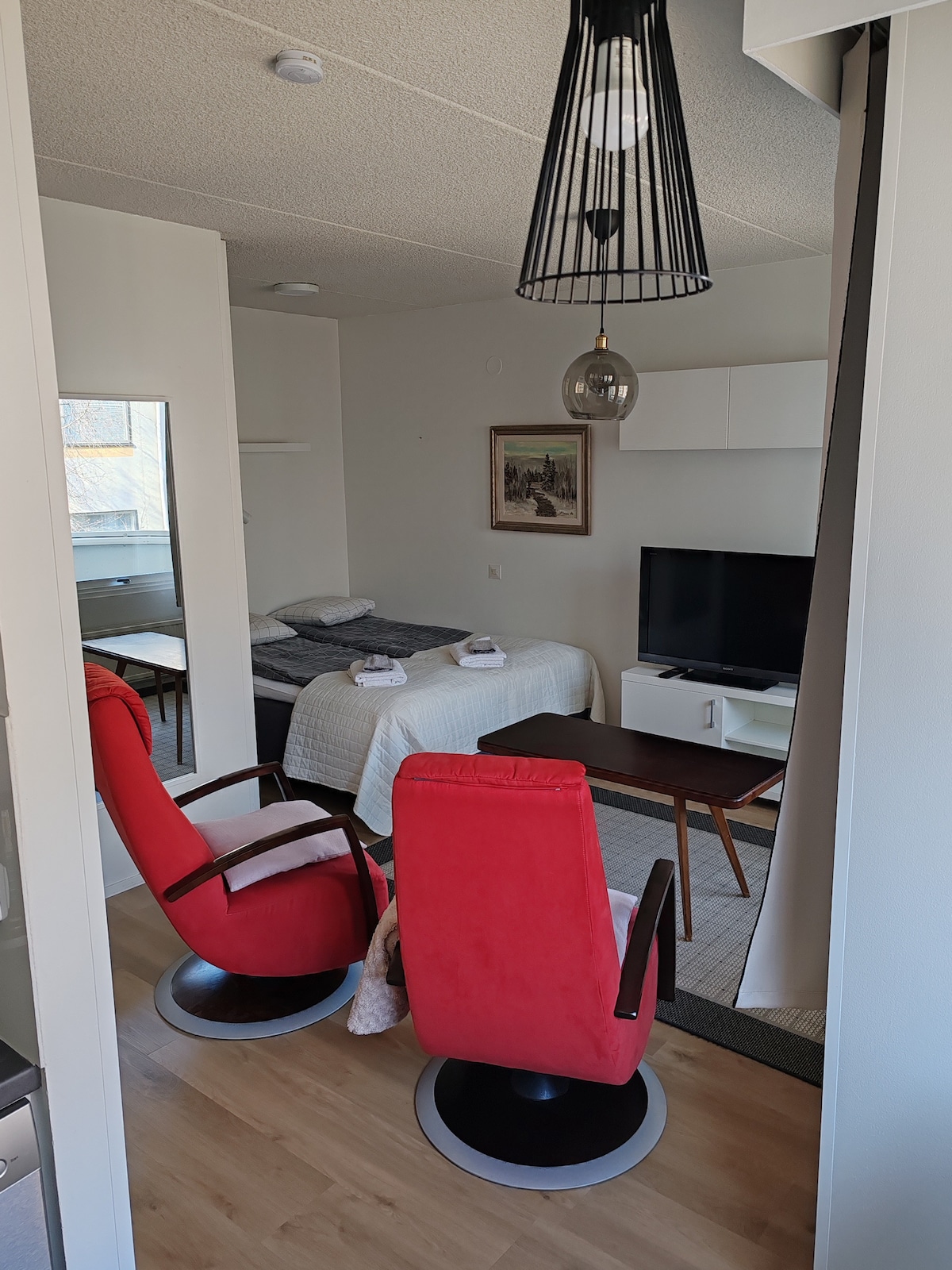 Kalustettu kaksio. Järvi 400 m . Ei omaa rantaa.Kalastus, kelkkailu.metsästys. Luonnon rauha. Mahdollisuus kylpytynnyriin.Oma sisäänkäynti. Sauna käytettävissä johon oma sisäänkäynti. Pesukone ja kuivausrumpu myös käytettävissä Ulkosauna myös käytössä.Etäisyys taajamasta n.35 km .Moottorikelkkailuun ja pilkkimiseen erittäin hyvät mahdollisuudet. Metsästys valtion mailla(Luvanvarainen).Netflix käytössä.Hanavesi on hyvää ja juotavaa.Wifi.