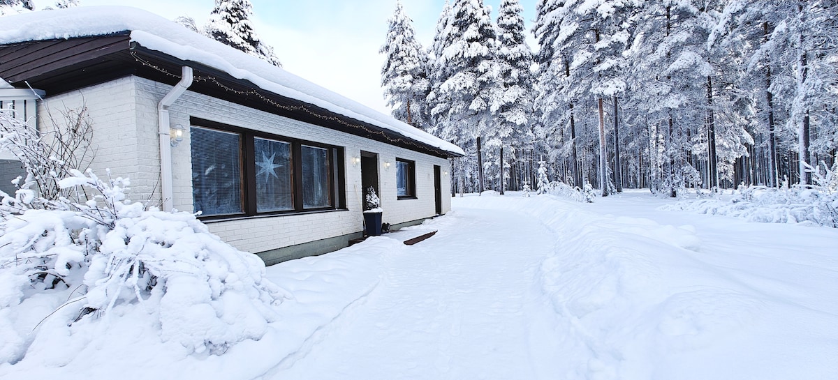 Private house (4 km from Rovaniemi center) offers NORTHERN LIGHTS/AURORA on the shore of a nearby lake (40 meters, 2 minutes to walk) and environment of silence and nature Apartment is a small independent, fully equipped house (26 m2),minihome in peaceful area for two persons (double bed,160 cm) with private entrance. Supermarket and bus-stop are nearby (100 m). It's easy to get by bus to city center (4 km) and Santa Claus's village/Airport (12 km).Free parking space right next to the apartment
