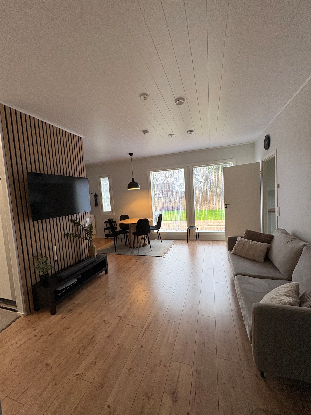 Tervetuloa tilavaan (115 m2) rivitalon päätyasuntoon, joka tarjoaa kaikki mukavuudet rentouttavalle lomalle! Asunnosta löytyy kesäkäytössä oleva uima-allas, kaksi vessaa ja puusauna sekä iso piha ja terassi. Keittiö on hyvin varusteltu. Ilmainen pysäköinti useammalle autolle! Asunnossa on yksi parisängyllinen huone (levitettävä laverisänky) ja kaksi huonetta, joissa yhden hengen sängyt. Lisäksi saatavilla kaksi patjaa. Asunnolta Oulun keskustaan noin 3 km.