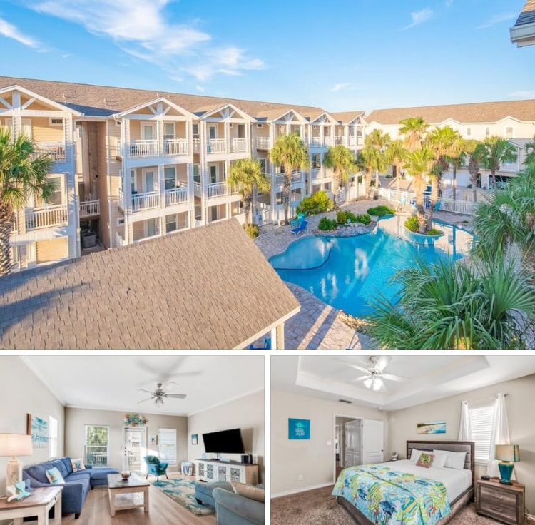 Palm Bay Dreams is a centrally located 1st floor 1 bedroom/1 bath condo with an unmatched pool that your whole family will enjoy. The Lagoon style pool includes a stunning waterfall, tropical rocks and trees throughout with a beach style entry! The kiddos will love the shallow splash pad area for hours of fun. Whitecap Beach is a short 3min drive where you can play in the sand, jump the waves and experience breathtaking sunrises!