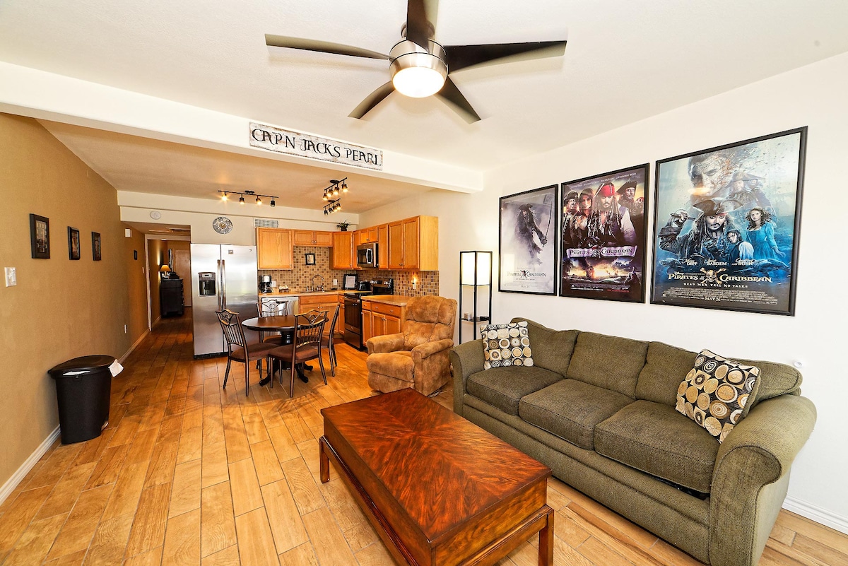 Tucked into Corpus Christi’s Bay, enjoy everything this place has to offer in this tropically decorated and perfectly located one-story villa. This three-bedroom, three-bathroom villa exudes beach holiday appeal and top notch comfort. Every detail of this paradise villa was well thought out from its ongoing tropical theme to its perfectly decorated patio, giving a wholesome vacation vibe. With more than ample space, you will experience absolute comfort like you are at your own personal resort.