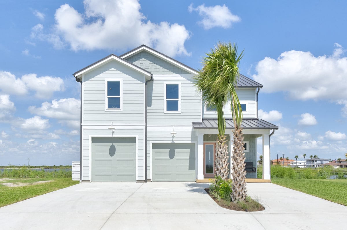 LUXURY BEACH & FISHING GETAWAY IN CORPUS CHRISTI. This beautiful island home is located near the sunlit Laguna Madre on a WIDE canal minutes from the Whitecap beach, Padre Island National Seashore and intracoastal waterway. PERFECT for your beach and fishing getaway. Reconnect with loved ones in this family-friendly place. Stunning water views. Enjoy fishing from the multi-level deck. Park your boat at the private boat slip attached to deck. Have dinner at the deck. Enjoy the views& recharge