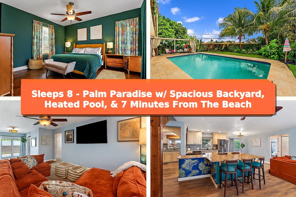 迷人的私人套房,恒温泳池,5分钟到海滩体育场PGA