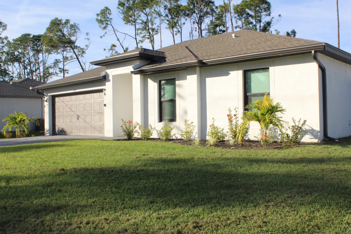Welcome to your Florida Escape in North Port. A New built modern home House with 3br, 2 full baths, 2 car garage for covered parking. Located close to FL Gulf Beaches and Mineral Springs. This immaculate House is conveniently located within 5 min from exit 179 on I-75, Suncoast Technical College, Shannon Staub Library, also in few minutes: Grocery stores and dining. Quiet street. Shrouded in privacy yet close to everything that you may need.
