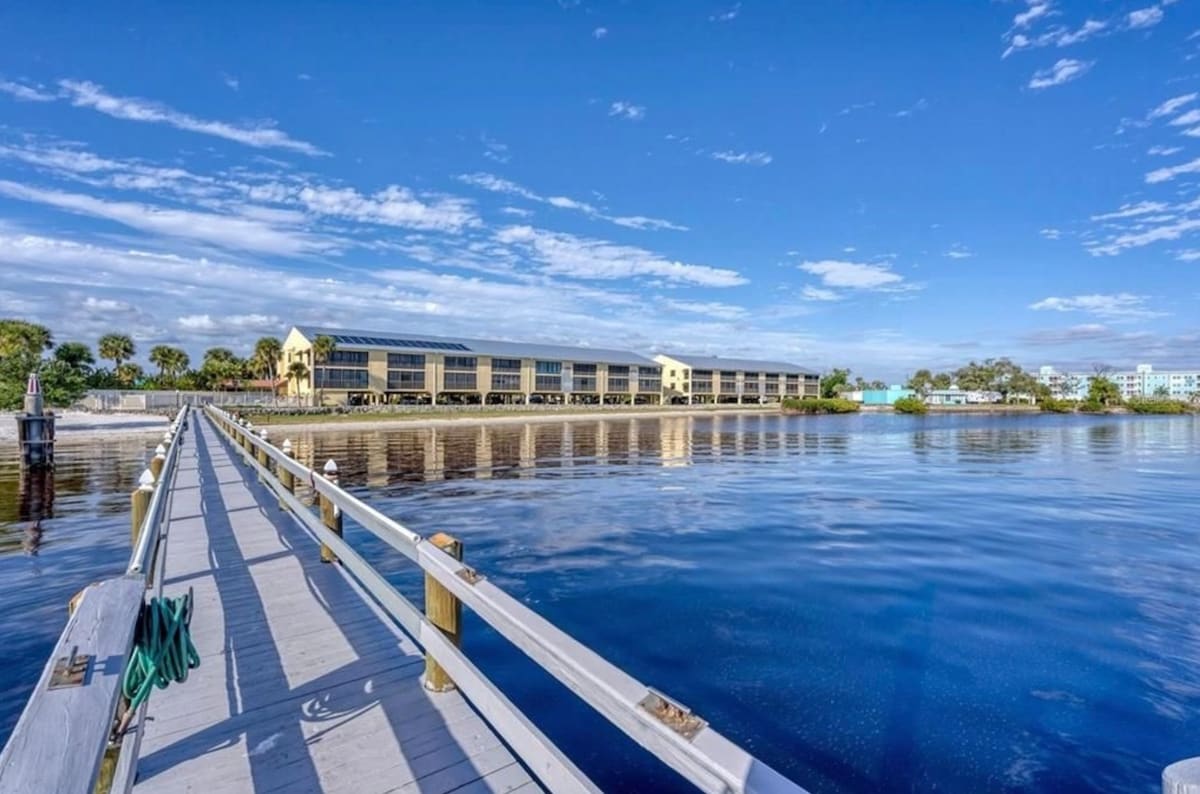 1 week min. Beautiful turn-key, fully furnished 1BR/1BA condo with sofa sleeper—wake up to stunning water views. Well-behaved pets are okay. Perfect for relaxation or adventure, sleeps 4. All utilities & amenities included, plus washer/dryer & dishwasher. Resort-style features: Olympic-sized heated pool, gym, pickleball, boat launch, picnic spots, gas grill, pier & gazebo. Low season Apr–Dec, High season Jan–Mar