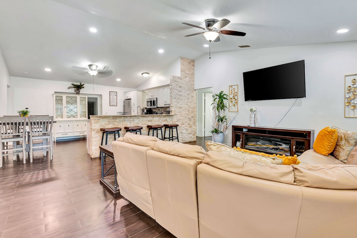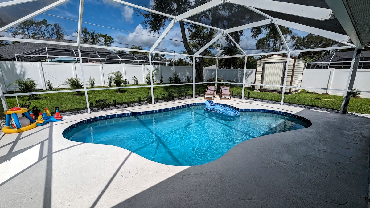 Bring the whole family to this great place with lots of room for fun and relaxation. This newer 4 bedroom house is over 2,200 sq ft! Extra large & heated swimming pool and Spacious lanai for entertainment. Wagon, chairs, umbrella , beach towels and cooler available. Kitchen fully equipped including spices and coffee while available Laundry and dishwasher detergent provided. Conveniently located within 5-10 minutes by many stores and restaurants and not too far from local beaches.