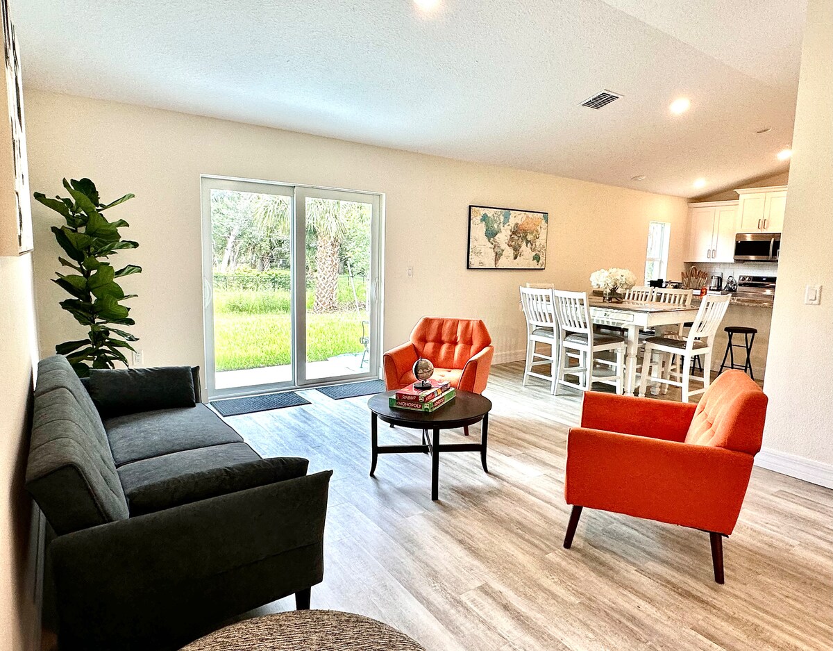 Relax with the whole family at this peaceful place. Only a 0.6 mile walk to the Mineral lake. Fish from the back or use our canoe to take a ride on the water. You will often see manatees and other wildlife. This house is full of windows and natural light for a peaceful vacation in sunny Florida.Recently remodeled and refurnished you will have three bedrooms and two baths but also both couches open to make an extra bed as well. Enjoy the sunrise and sunset from the lovely back yard.welcome!