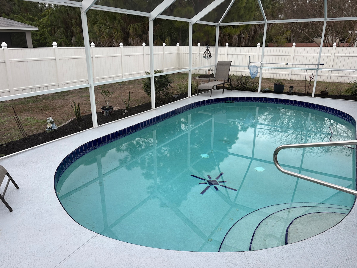 Welcome to our relaxing getaway vacation retreat in Southwest Florida! This spacious 5bedroom 2bath home is located in North Port, in a quiet residential area- great place for a restful vacation near the Gulf Coast. In a great location for all who want to explore SW Florida and all the beautiful beaches it has to offer. It is located minutes from I- 75, Warm Mineral Springs, restaurants, grocery stores and shopping. Fully furnished with all new furniture and heated pool ready for your enjoyment.