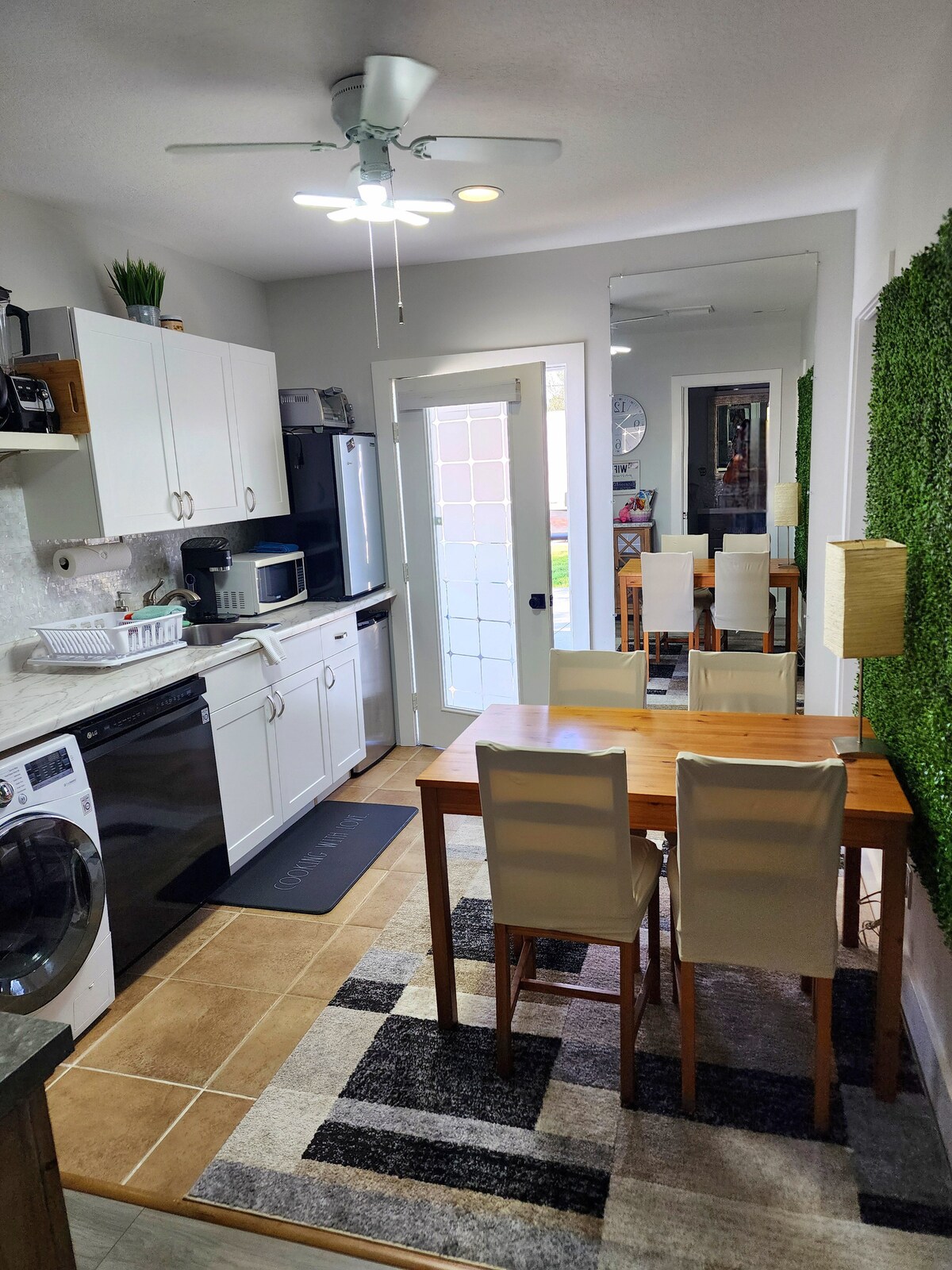 Experience comfort and style in this charming, pet-friendly space, perfect for short getaways. Enjoy the privacy of your own entrance, along with a full shower, cozy living room, dining area, and bedroom, all within one convenient layout. The fully fenced backyard, shared with other tenants, features a grill and fire pit—ideal for relaxing evenings outdoors. While the space includes a kitchenette, access to the main shared house may be available if you need a full kitchen or laundry facilities.