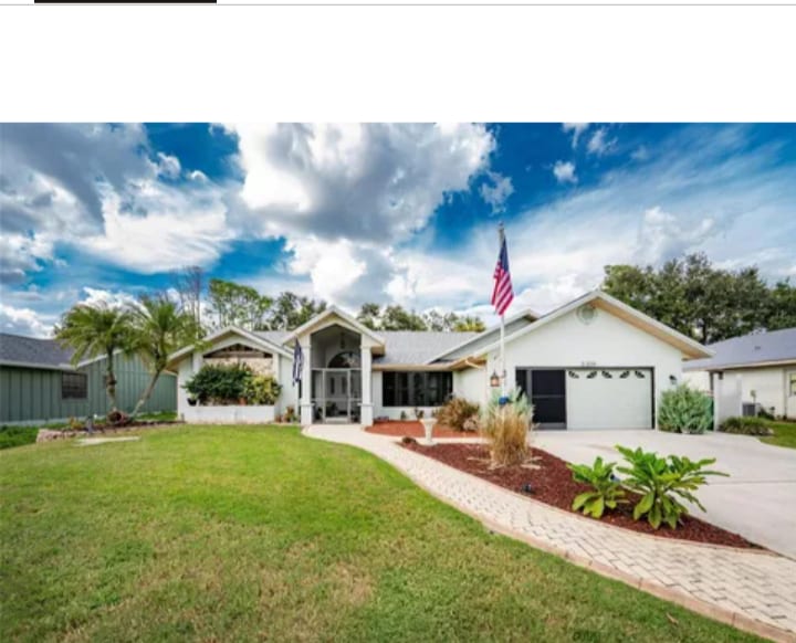 Relax with the whole family or a group of friends at this peaceful place in Paradise. A beautiful clean home that can accommodate up to 6 guests. For a peaceful area, there is much to explore! Only 10 minutes away from the world famous " Fountain of Youth " (Warm Mineral Springs), 7 minutes from the Water Park (Aquatic Center) and just across Heron Creek Golf Club. All restaurants, entertainment and Gulf beaches are within a short distance, 20-25 minutes away, 6 minutes from I-75.