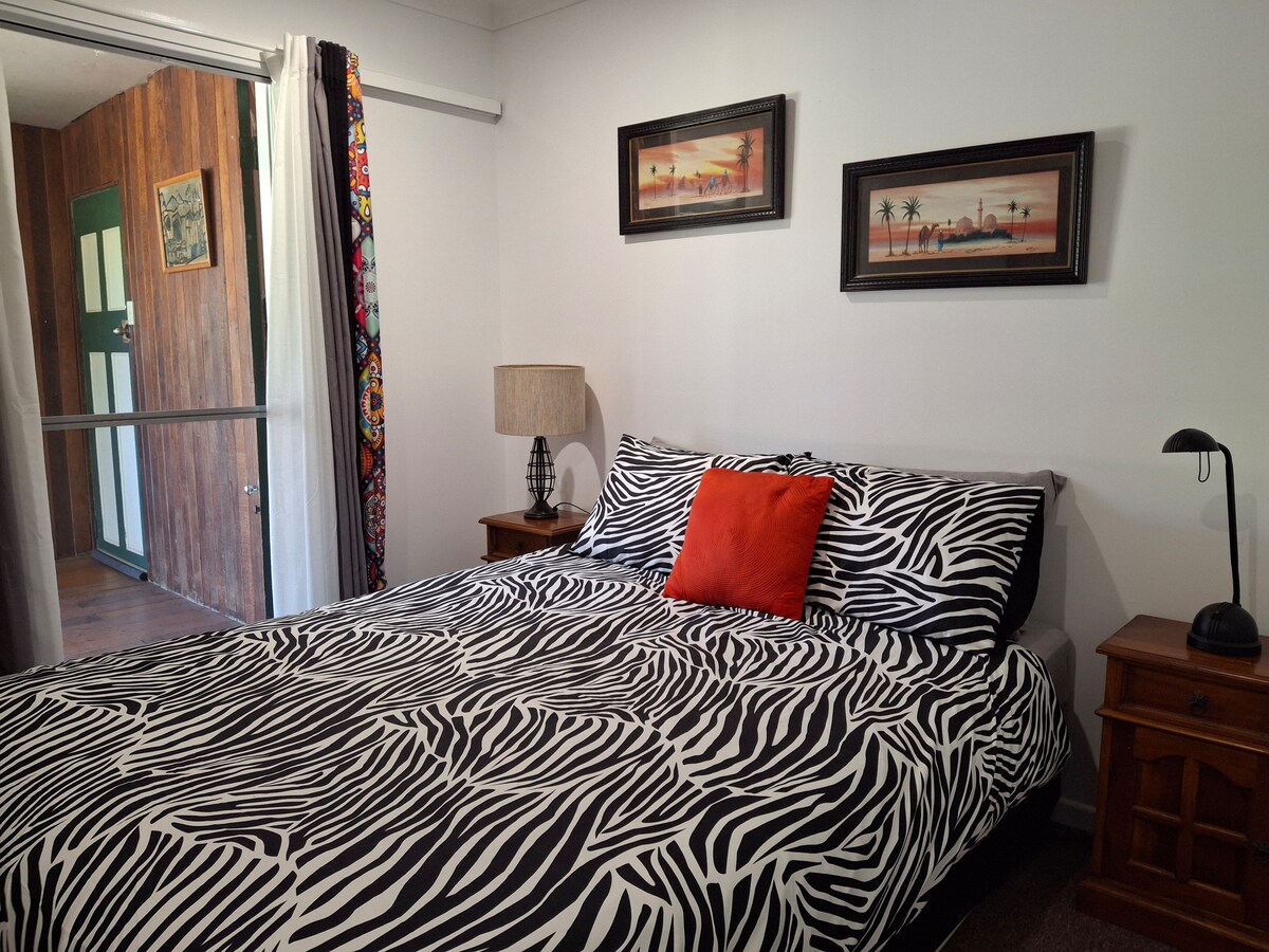 Hidden amongst a tapestry of greenery, a lush, vibrant oasis. Just 14 km from Mission Beach and 8 km from Woolworths, Wongaling, our guest house is perfect to relax after exploring our little packet of paradise. Situated on 2 acres and secluded from the main house it has it's own private entrance. The property backs onto the wild and primeval Hull River. With a boat ramp and boat parking bordering the side entrance, it is the ideal hub for fishing enthusiasts. 30 min to Dunk Island.