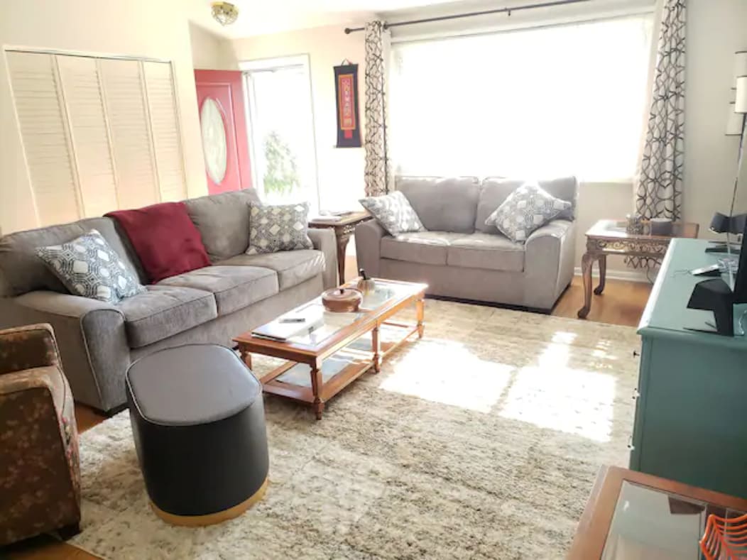 This spacious 2 bedroom second floor apartment is perfect for those who are traveling with 4to5 guests very private rooms offers work/office space with door that separates you from the rest of the unit nice size bathroom tub/shower tv in every bedroom front and back entry/ exit staircase laundry room located back entrance hallway recently added foosball table & darts 🎯 chess/checkers areas for the game competitive guests ! Free airport pick up!