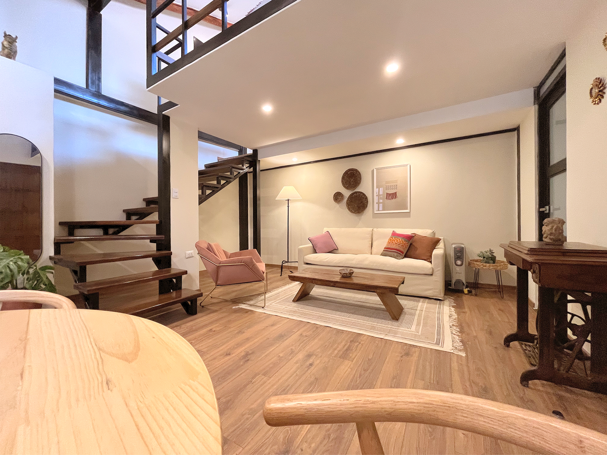 Wake up to panoramic views of Cusco bathed in morning light. This bright, design-forward duplex blends natural warmth with modern comfort, where large windows and open spaces frame the city’s skyline. Built on sacred Inca land once home to the lineage of Inca Manco Cápac, it sits just a 10-minute walk from Sacsayhuamán and Plaza de Armas — close to the city’s pulse yet perfectly peaceful for slow mornings and golden sunsets. We recycle and compost, honoring the spirit of this place.