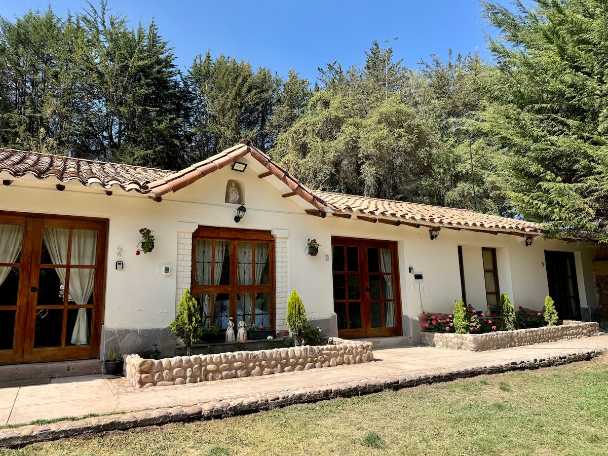 Relax and enjoy the rejuvenating energy of the Sacred Valley. Use your own private garden, or seek out the stream, orchid walk, fire pit and pool area. The cozy 3 bed cottage can be rented with its own additional guest suite or a more complete / independent studio (listed separately) for 2, both sit on the grounds of our beautiful Andean home. Studio link is : airbnb.com/rooms/6511144