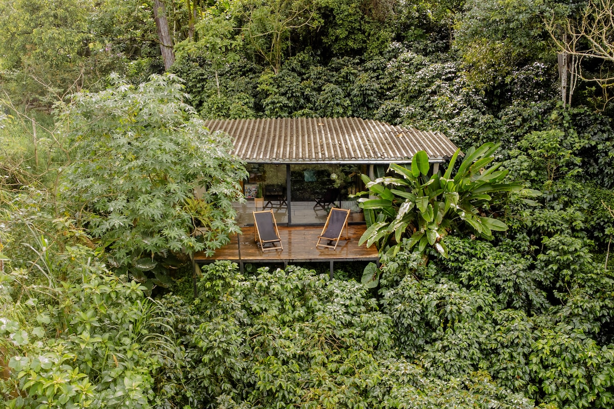 El cuarto en formato loft se encuentra en medio de un cafetal rodeado por bosque. El lugar perfecto para observar aves y tener intimidad con la naturaleza. Mañanas nubladas y atardeceres únicos! La habitación cuenta con baño privado y una pequeña cocineta con lo necesario para pasar unos días allí de forma totalmente independiente.p y desconectada.