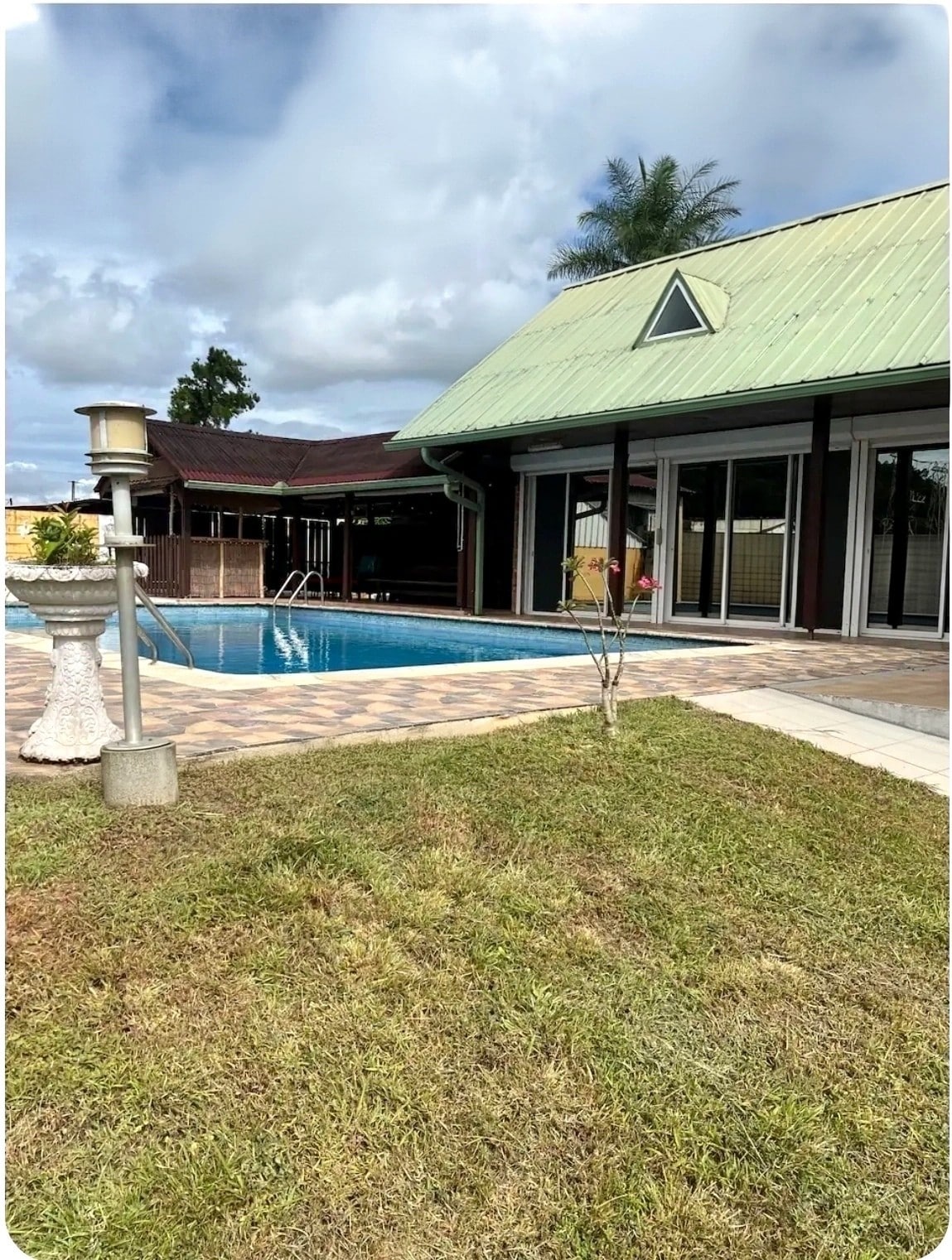 Équipée d’une très belle piscine avec pierres de Bali , un jardin avec deux carbets , une grande terrasse qui donne directement sur la piscine, un grand séjour, salon, cuisine très moderne tout équipée, salle à manger, un couloir, une suite avec une grande salle de bain douche italienne moderne qui donne directement accès à la piscine , deuxième chambre composée de 2 lits , troisième chambre avec un grand lit , toutes les chambres sont climatisées.