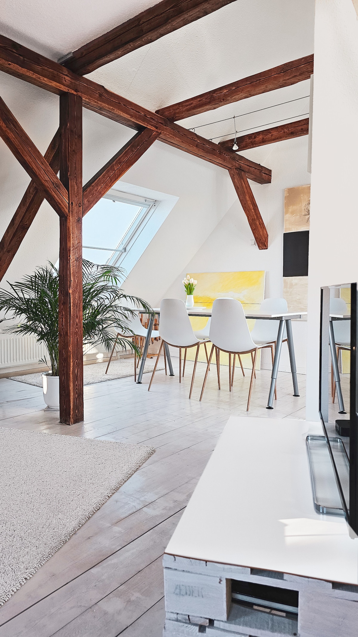 Das whiteloft ist eine unserer Top Locations die wir seit Okt22 bei Airb&b anbieten. Das Loft hat ca 130qm , Deckenhöhe 5,5 Meter 50% der Fläche ist nur auf wellness & living ausgelegt. Badewanne,Daybed, 2PersSchneckendusche und Echtholzkamin lassen keine Wünsche offen. Im Sommer kann ein 5x4Meter Tor geöffnet werden welches den unteren Loftbereich zum Cabrio macht. Die große Küchenzeile und der Block sind Eventgeeignet Weinkühlschrank 4xGas und ein Ceranfeld gehören zur Ausstattung