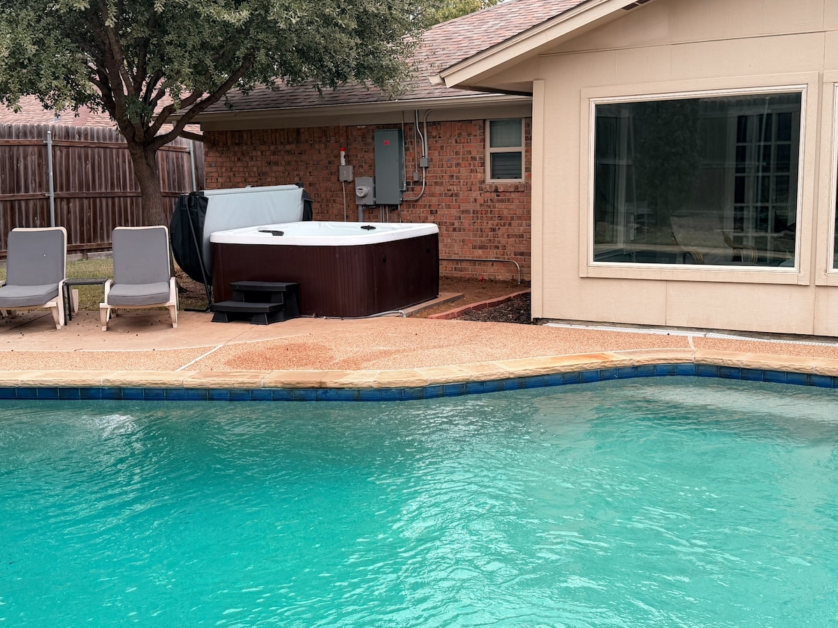 达拉斯/沃思堡机场豪华泳池边度假屋,配备全新热水浴缸
