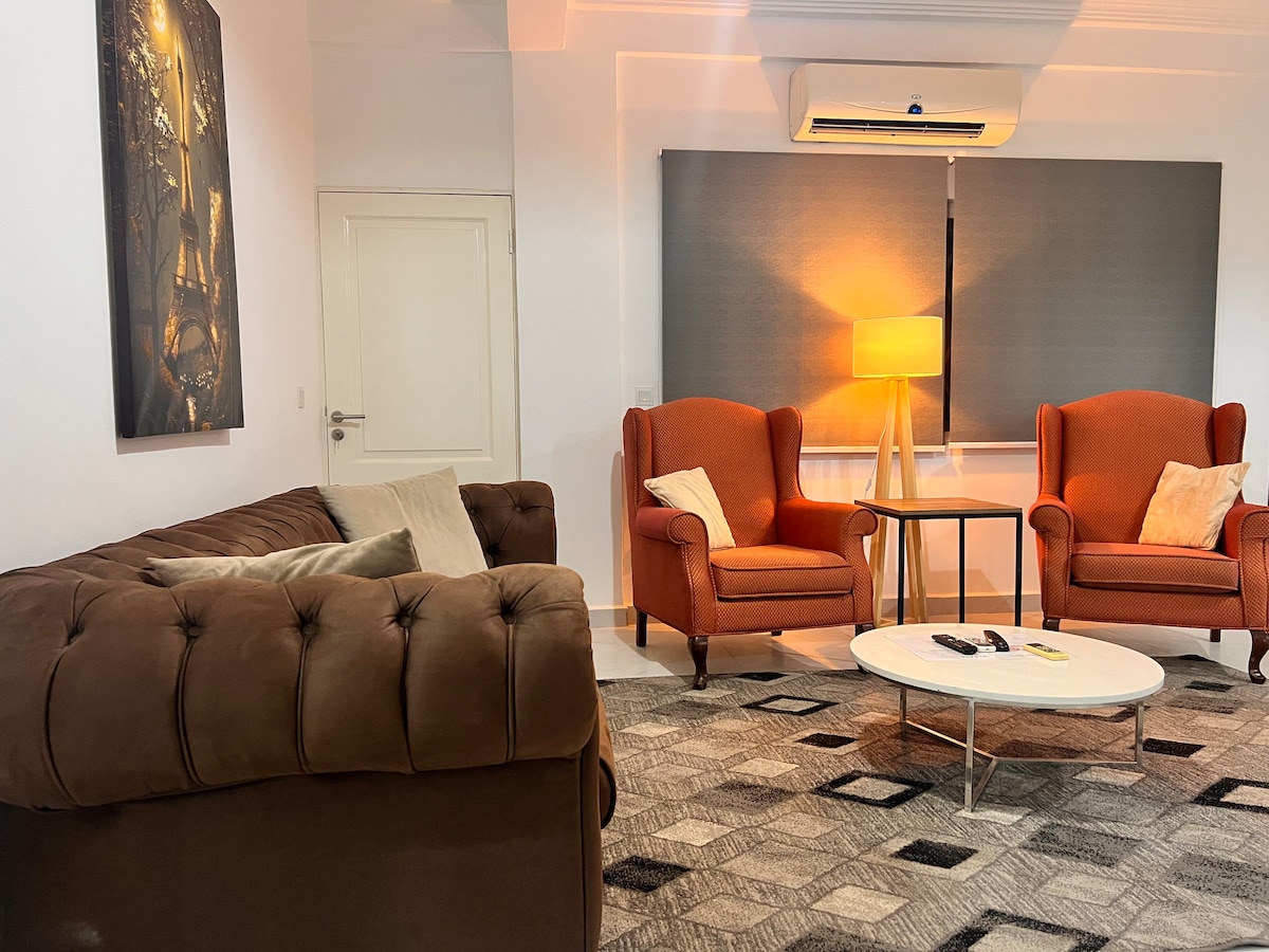 Enjoy a wonderful stay at our elegant and cozy one(1) bedroom, fully furnished apartment with a private living room, kitchen and bathroom; located in the heart of Accra. Every detail in this apartment was designed with you in mind; to ensure your stay is pleasant and peaceful. This secure apartment is in close proximity to tourist sites, restaurants and the Kotoka International Airport Our client experience team is available from checkin to checkout, to ensure your stay is truly comfortable!