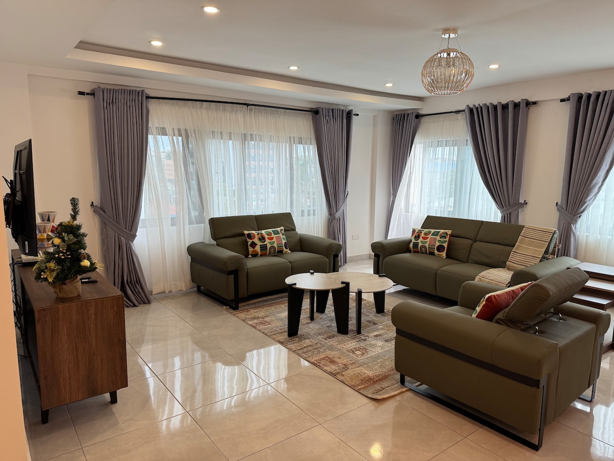 Stay in the heart of Accra, just 10–15 minutes from the Airport. This spacious apartment at Adinkra Heights on the Switchback Road, Cantonments is filled with natural light and designed for comfort; your perfect home away from home. All three rooms, living area, and kitchen are fully air-conditioned. The kitchen is stocked with modern appliances, cookware, cutlery etc. Whether you’re visiting for business or leisure, you’ll love the central location, tasteful décor, and relaxing atmosphere.
