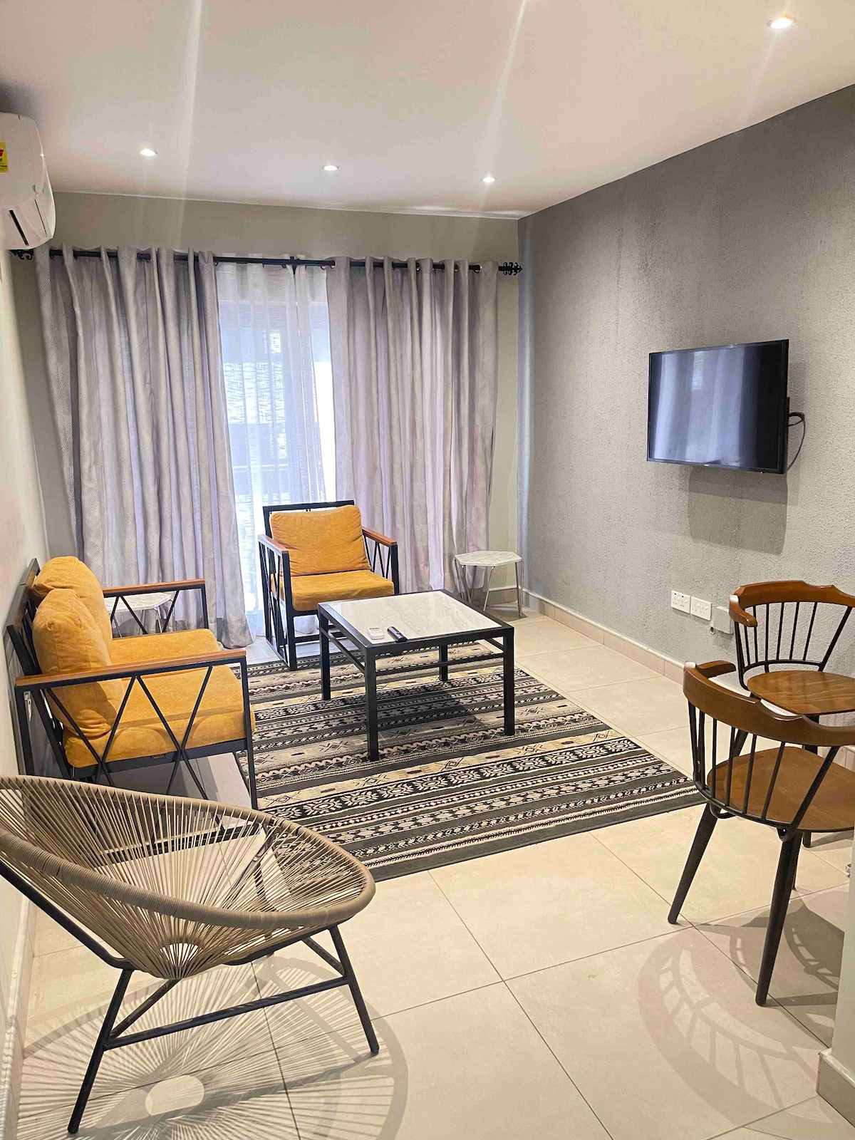 Enjoy your stay in this elegantly furnished 1-bedroom apartment in East Legon, Accra. The apartment is 14 minutes away from Kotoka International Airport and is close to The AnC Mall, Pulse Gym and Fitness, and several restaurants and eateries, including KFC and Pizza Hut. In addition to all the above, we have a standby generator and a water storage and pumping system, so you'll never have an outage of electricity or water.