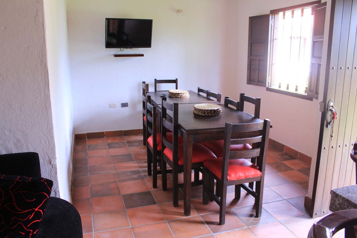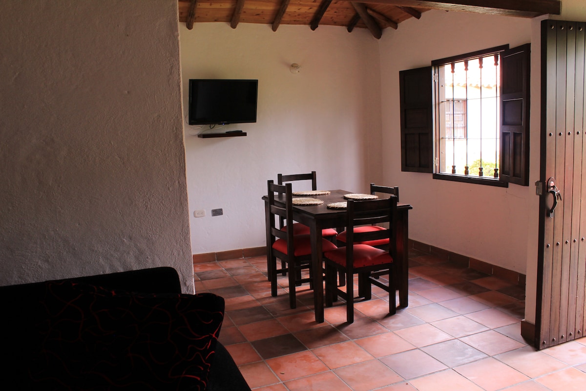 Relájate en esta escapada única y tranquila, muy cerca de la ciudad dentro de una finca cafetera en la vía a la mesa de los Santos , cerca a lugares de interés de la zona . Cañón del Chicamocha y más .