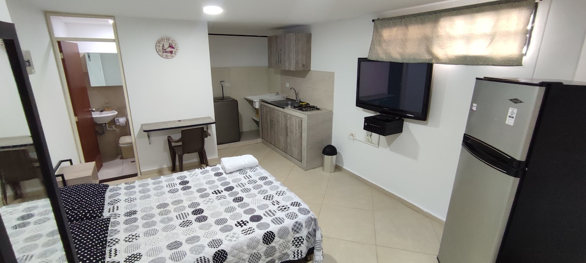 Bienvenidos a nuestro acogedor apartaestudio céntrico, ideal para quienes buscan comodidad y fácil acceso a puntos clave de la ciudad. Cuenta con cocina equipada, sala con smart TV, comedor, lavadora, secadora y nevera. La habitación ofrece una cama queen y un baño cómodo. A poca distancia de Farmatodo, supermercado Más x Menos, La Panamericana, iglesia San Pedro y clínica San Luis. Perfecto para estancias cortas o largas, con todas las comodidades para una estancia placentera.