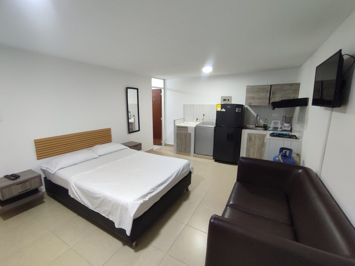 Disfruta de la sencillez de este alojamiento tranquilo y céntrico; Cómodo, moderno y agradable, con todo lo indispensable para hacer su estadía placentera. Apto Estudio tipo Loft, consta de cama doble, closet, aire acondicionado, televisor, sofa, cocina, totalmente equipada, nevera, lavadora, baño. Apto central a 10 minutos del aeropuerto, en una zona segura. a pocos minutos del c.c. unicentro. la zona tiene supermercados, restaurantes y todo tipo de negocios. a 10 minutos del c.c. Ventura.