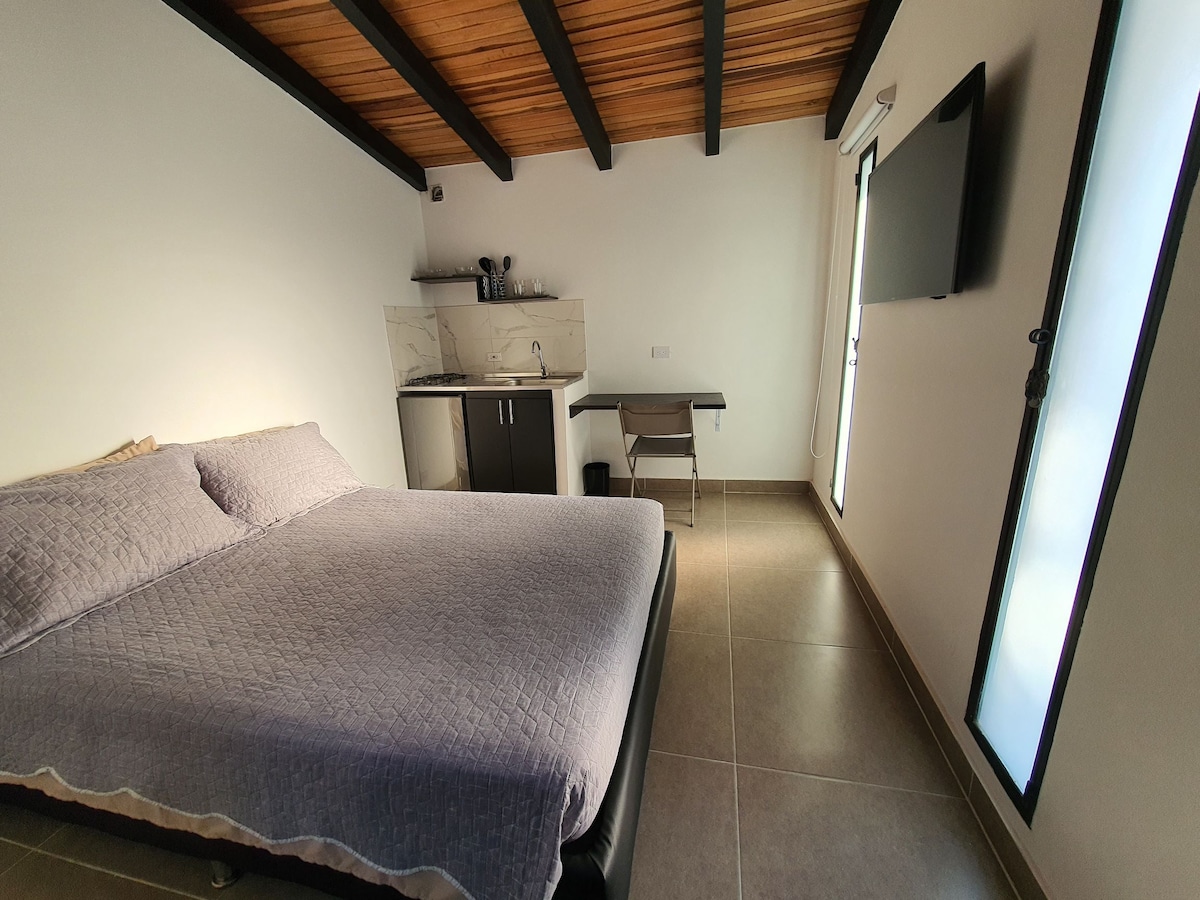 Disfruta de una experiencia con estilo en este alojamiento, bien ubicado, cerca del hospital, clínicas y centros comerciales. Este Aparta Estudio es muy completo, tiene cocina, nevera, closet, baño, Tv, Wifi, Aire y zona para trabajar.