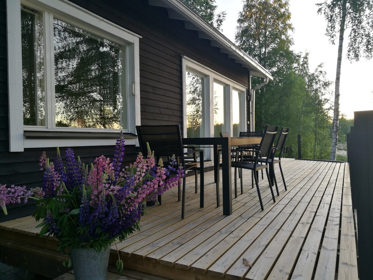 120 neliöinen omakotitalo järven rannalla, jossa upea terassialue aina valmiilla ulkoporealtaalla viidelle. Lasipaviljonki on rantasaunan yhteydessä sekä ulkobaari. Hyvin varusteltu talo mahdollistaa rentouttavan loman jokaisena vuoden aikana. New beautiful house (120m2) with amazing lake view. The house is well equipped and has a large terrace, lakeside sauna with a glasshouse and an outside bar. There is everything you need for relaxing and lovely vacation in peaceful nature.
