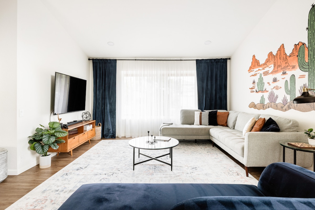 Welcome to Casa Cactus, a modern bohemian-inspired, newly constructed Villa nestled in the Tonto National Park in Scottsdale. 🌵 30 feet Saguaro -- it's right in our backyard! and estimated to be over 150 years old! ✨ Stargazing & Astronomy 🏜 Endless Mountain & Desert Landscape 🌅 Unforgettable Sunrise & Sunsets 📽 Projector & Screen for Outdoor Viewing 🔌 30 AMP Outlet for EVs & RVs 🔥 Indoor Fireplace 📺 Large Roku TV 📶 80+ Mbps WiFi 📏 2200 sqft - 4 Bedroom