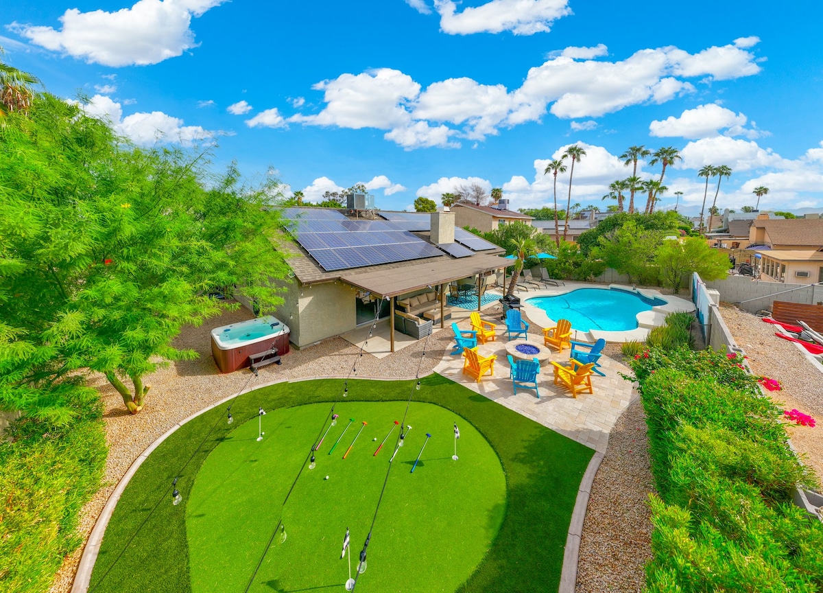Elegantly designed and modernized to meet the standards of the most discerning traveler. One of the highlights of this home is the large and private backyard area. The space is perfect for enjoying Arizona sunshine in the heated* pool, playing a few games of catch or corn hole in the large grass patch, gathering around the fire-pit for an after hours glass of wine and great conversation, or enjoying a cup of coffee under the covered patio and rising with the morning sun.