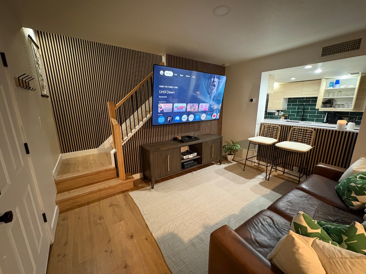Located in a nice neighborhood on an accessible road to many attractions in the heart of Scottsdale/Paradise Valley. Jumbo (Kitchen, living, dining) room, 2 bedrooms and 2 full bathrooms. Master bed has a king and 2nd bed has single sleeping bunk beds side by side. There is a sleeper sofa couch in the living room. Master bath has a shower and main bath has a tub and shower. 65" TV in living room with cable. There is also a horseshoe driveway to park multiple cars