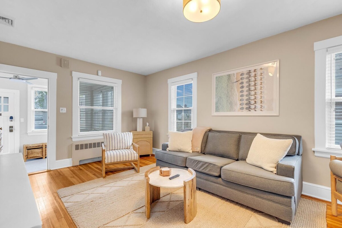 Iconic 70’s beach bungalow & pool nestled in a private 3/4 acre plot surrounded by mature oaks and evergreens. Our home is intentionally appointed by interior designers, filled with collectibles, art & antiques. Embrace the ‘Hamptons Bohemia’ feel, with a vaulted living room, ample seating, a wood burning fireplace and an outdoor area with a sprawling cedar deck & a heated pool. Located within walking distance of the bay beaches and an 8 min drive to Ponquogue beach & The Bowl Spot for surfing.