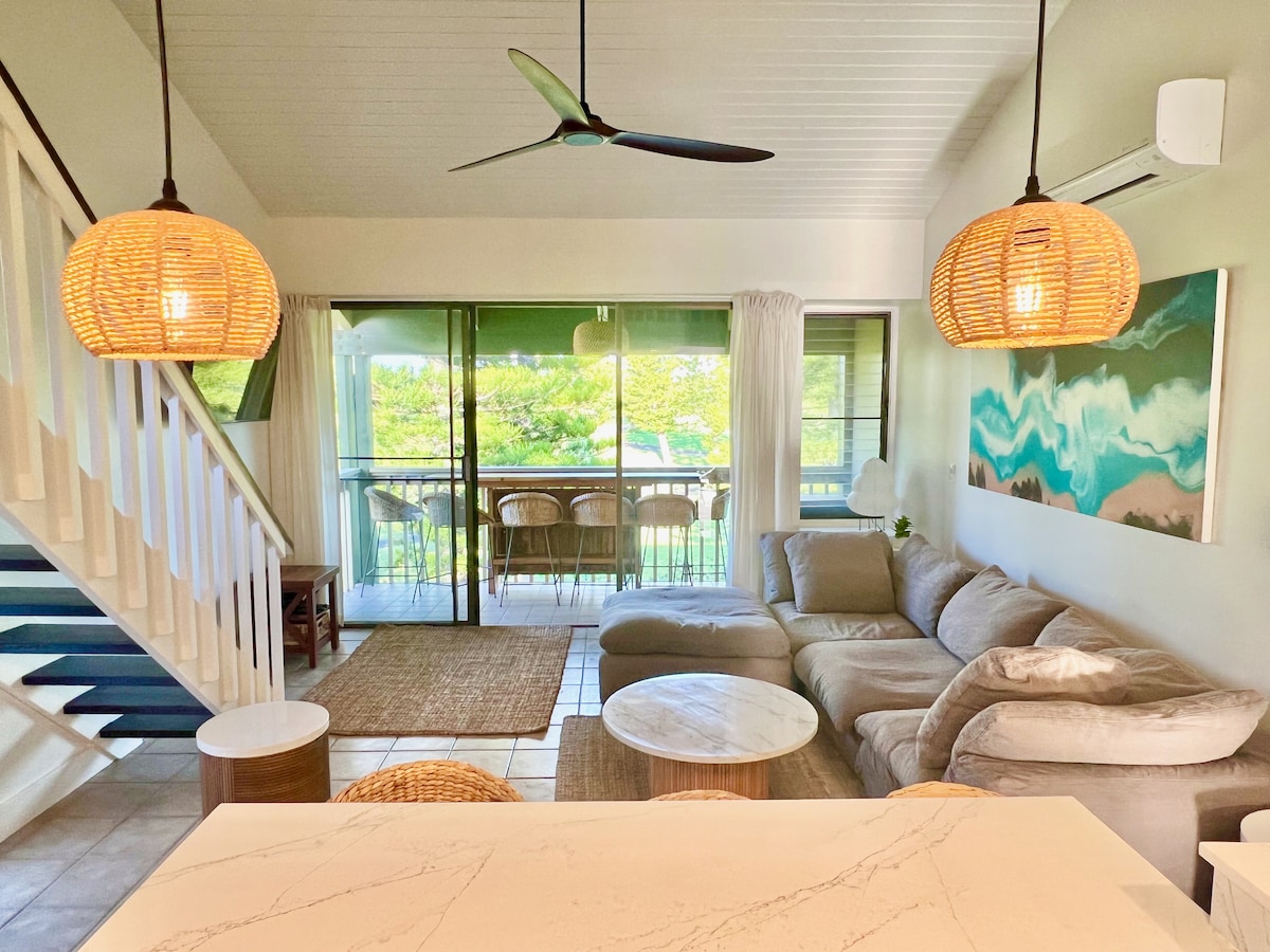 Welcome to your favorite escape! Our NEWLY RENOVATED condo located at Turtle Bay Kuilima Estates East has been fully updated as of September 2023. Our space is ideal for couples, friends, or families sleeping up to 5 people. This top floor corner unit with vaulted ceilings is full of natural light, tropical breezes, and unobstructed views of the pool and golf course. This is one of the few legal and licensed vacation rentals on Oahu.