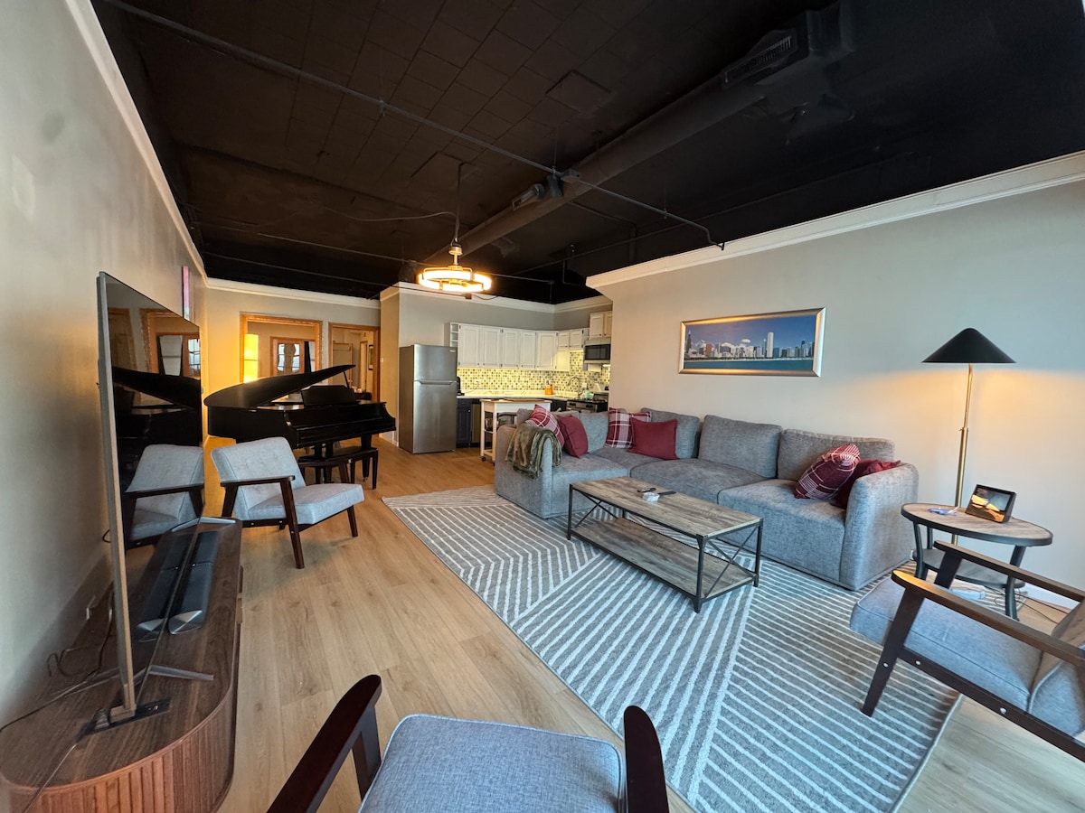 芝加哥复古现代风格的Lakeview Loft,配备现代便利设施