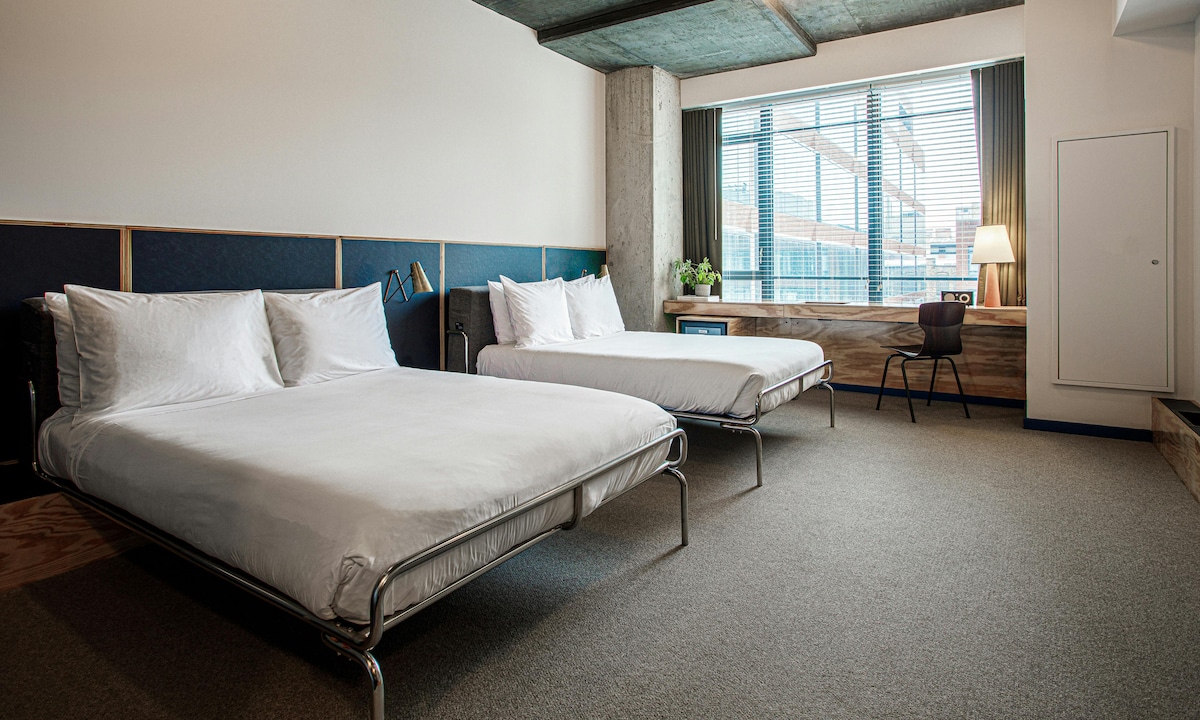 The Hoxton, Chicago feels like a home away from home, with its comfy hotel rooms, great food and a rooftop to soak up some rays in the heart of Fulton Market District, one of Chicago's most creative neighborhoods. All rooms come with mid-century furnishings, modern bathrooms, and warehouse-style floor-to-ceiling windows to show off Chicago in full.